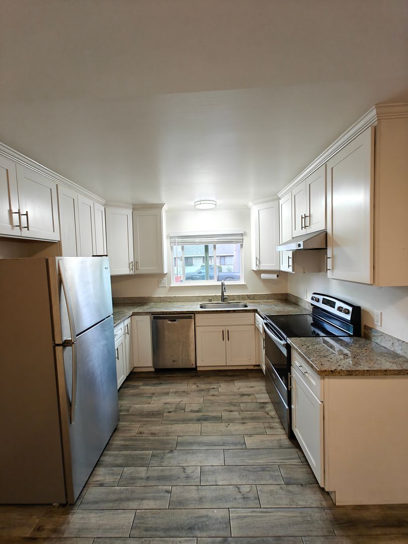 - Beautiful Kitchen Includes Refrigerator, Granite Counters, Updated Cabinetry, Electric Range/Oven, Dishwasher