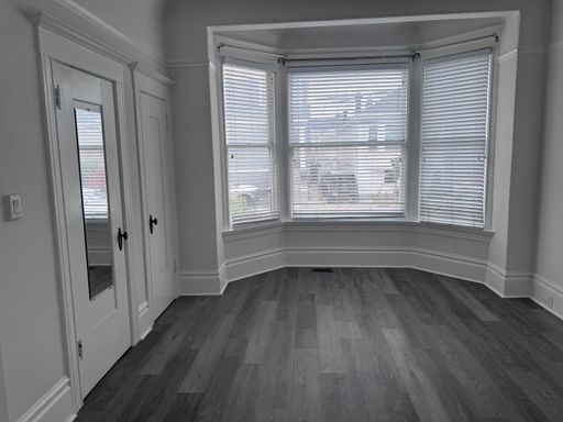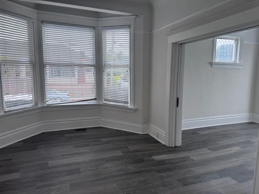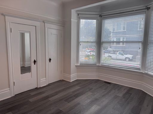 This is a beautiful and sunny 2 br/1 ba apartment in an intimate, restored 7-unit Edwardian mansion. Loads of vintage appeal! This apartment gets a lot of sunlight and has separate dine-in kitchen with a 2nd back entrance to the east-facing deck and back stairs. Large kitchen area has plenty of space for dining table in kitchen. Freshly Repainted and Refurbished floors. Coined Operated Washer Dryer on site.