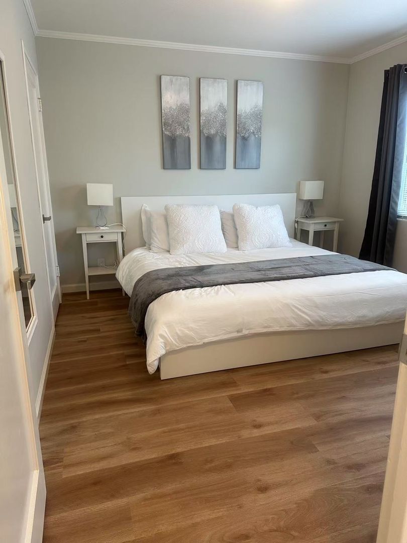 *Comfortable king-size memory foam bed in the bedroom with a full closet